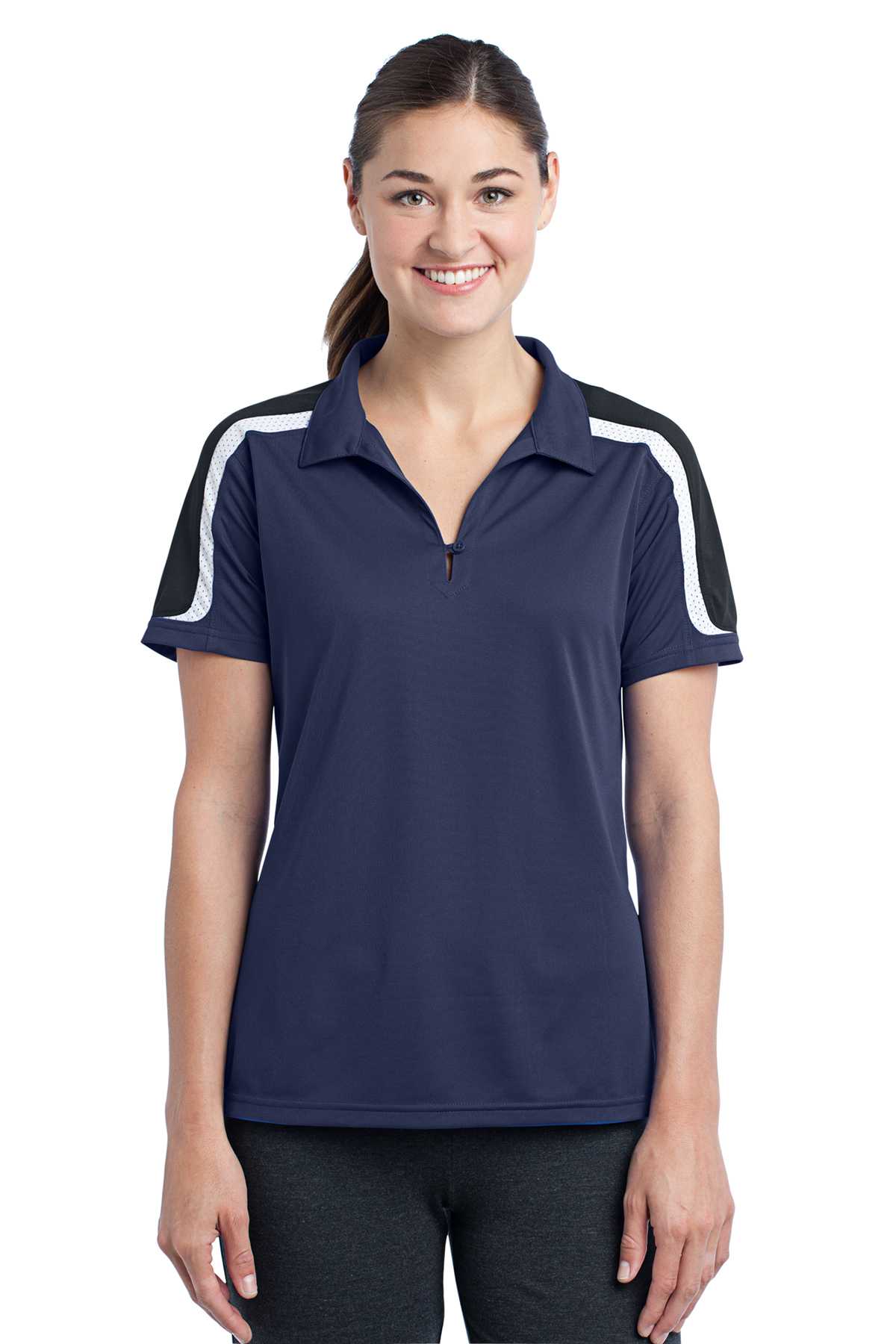 Sport-Tek ® Ladies Tricolor Shoulder Micropique Sport-Wick ® Polo. LST658