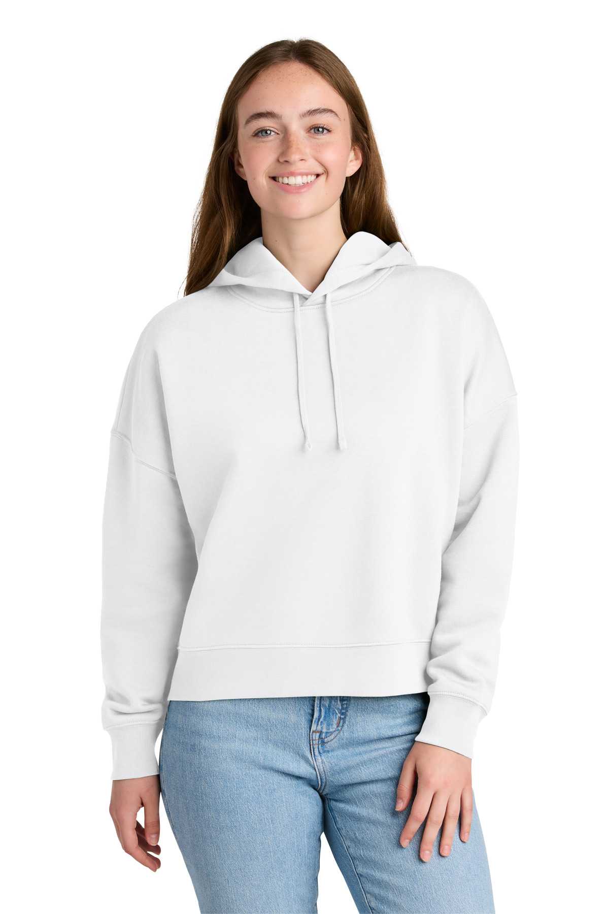 A flattering hoodie with contemporary flair. An adjusted length and refined details add a feminine touch to this sustainably-made sweatshirt.